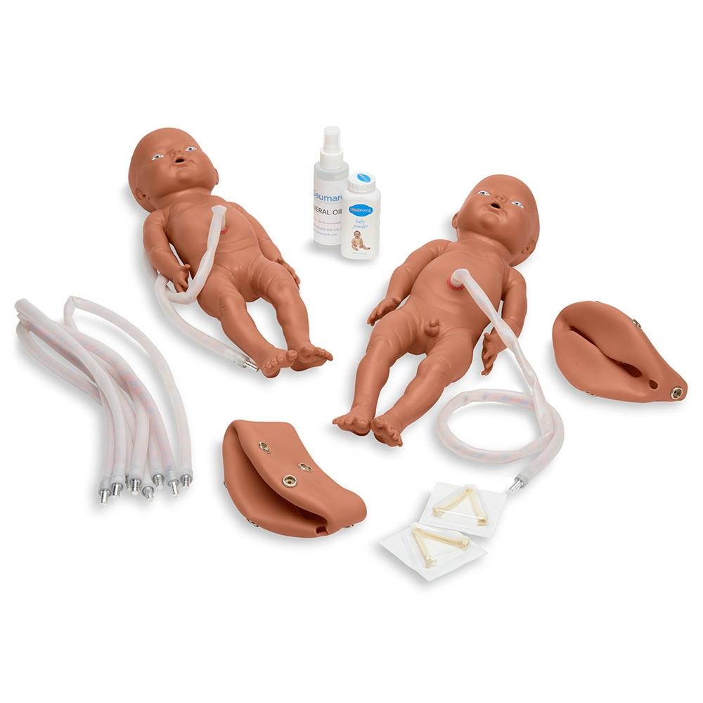 - One baby boy and one baby girl, each with umbilical cord and placenta