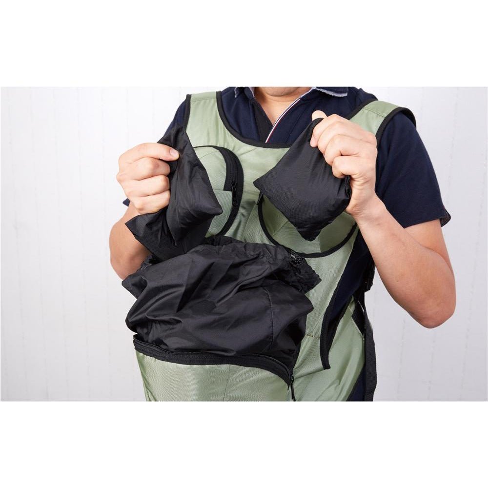 The weights in the breasts and abdomen can be inserted and removed so that you can adjust the total weight during training.