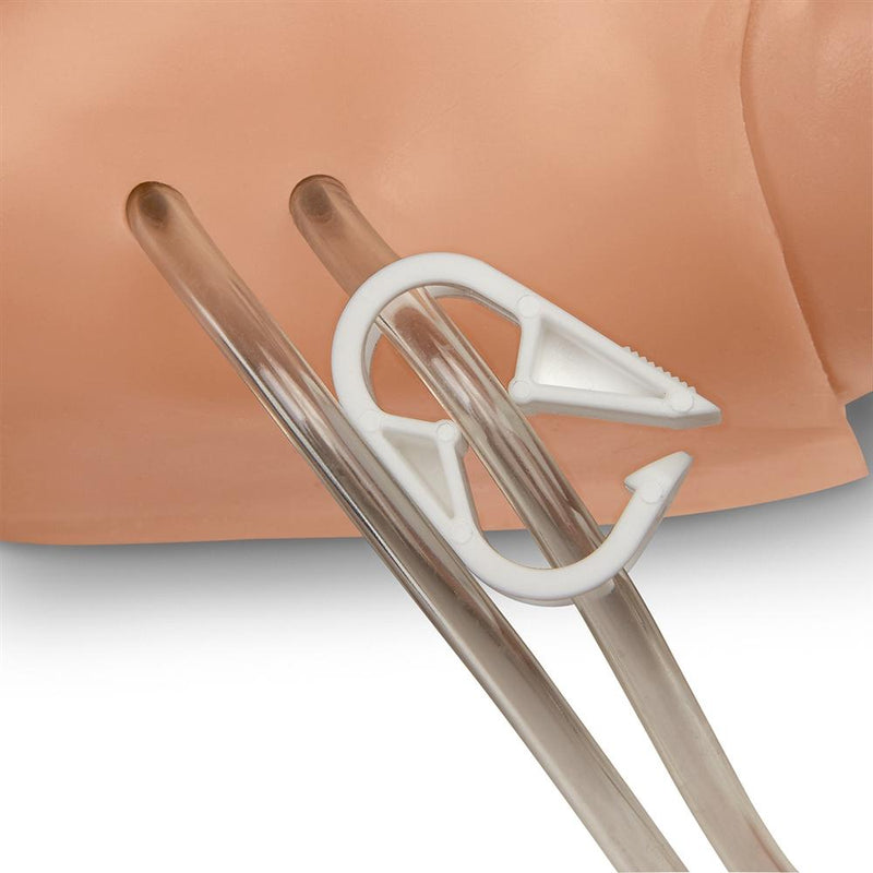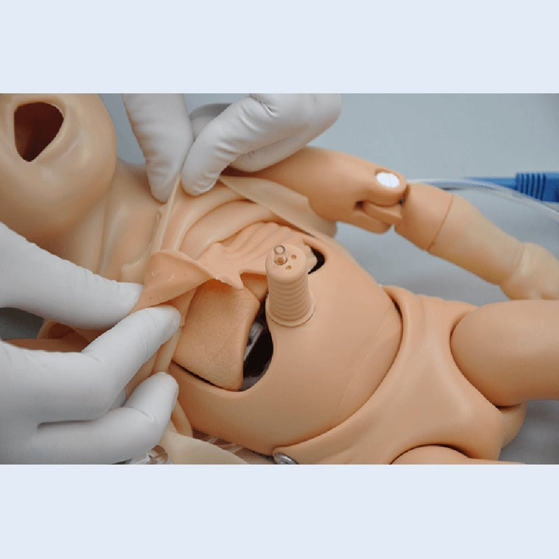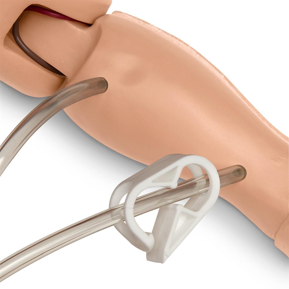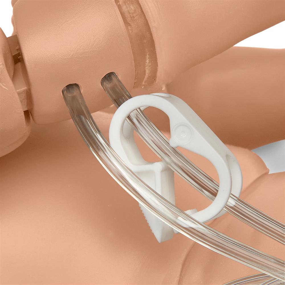- Realistic airway with tongue, vocal cords, trachea, and esophagus for airway management exercises