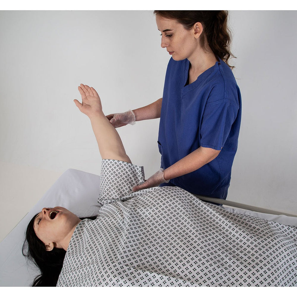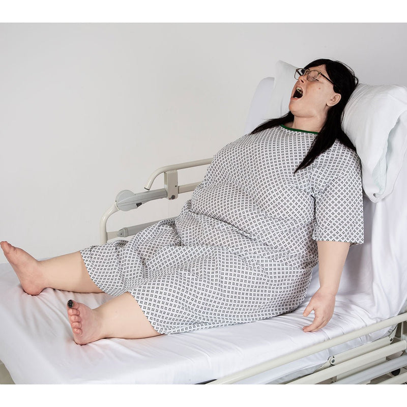 The R42 Bariatric Nursing Manikin represents a 145kg (320 lbs) female patient.