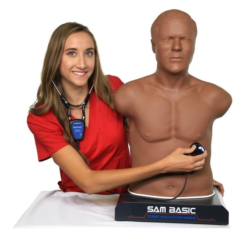 SAM BASIC® - Adult Auscultation Trainer with SimScope Wi-Fi Training Stethoscope, Dark Skin