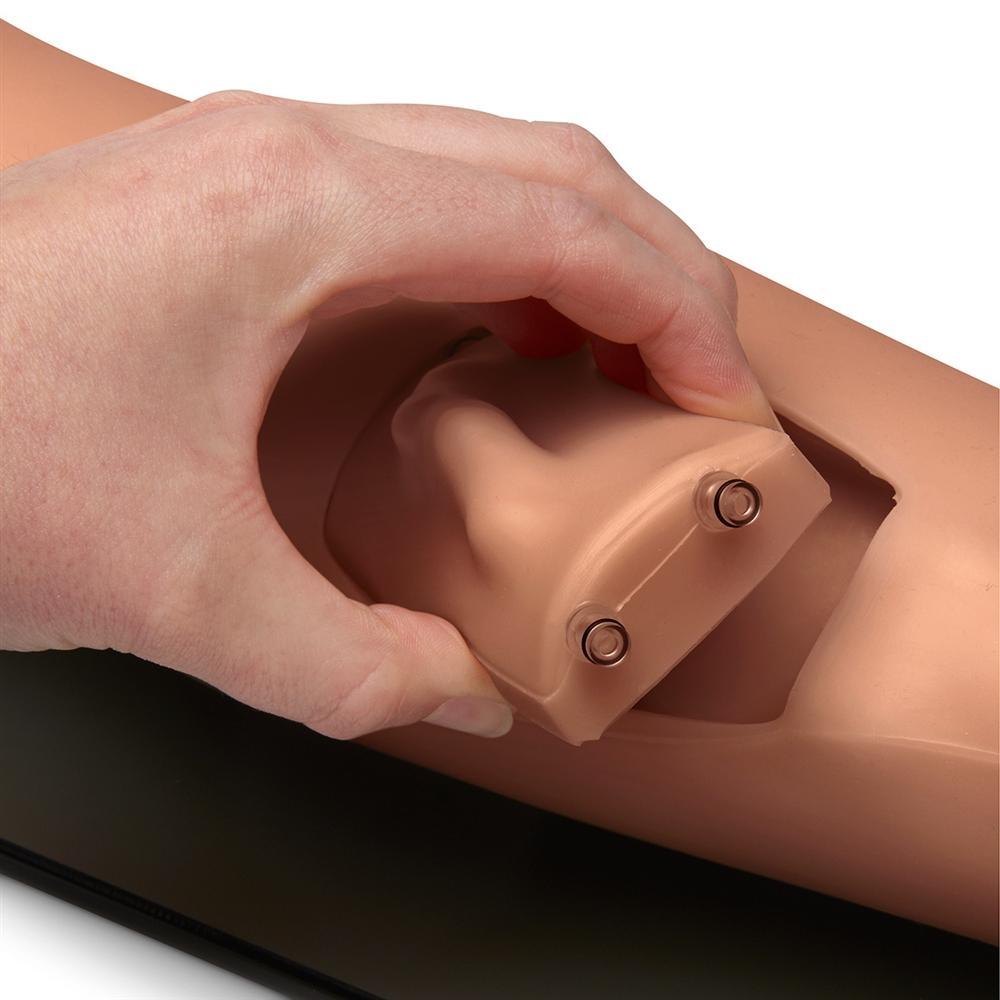 Gaumard’s SMASH Advanced Patient Training arm was first introduced in 1986. The latest improvement to this “world class” standard offers realism in a sleek design. A micropump mounted within the simulator’s shoulder delivers automatically generated arterial pulses at the radial and brachial sites and controls arterial blood flow by allowing variable heart rate and pulse strength. Interchangeable arterial and venous inserts within the forearm allow creation of arteriovenous (AV) fistulas and placement of AV grafts, while a simulated healed fistula insert provides a platform on which hemodialysis exercises can be performed. An additional multi-layer insert in the bicep area can be used for incision and suture training exercises.SMASH Advanced Arterial Patient Training Arm Features: