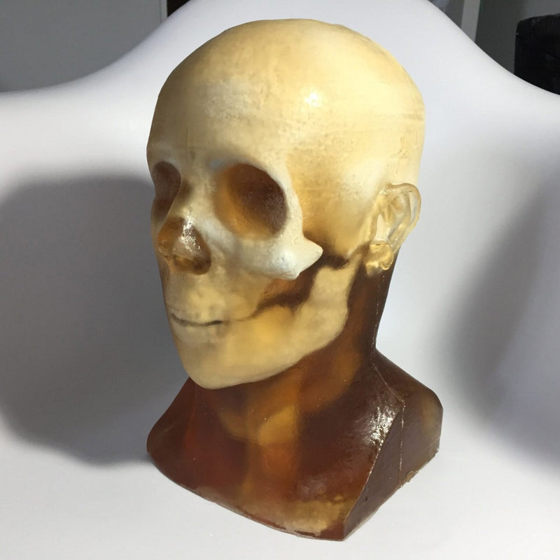 The Static Adult Head Phantom is designed to be suitable for medical imaging of foreign static objects such as small bone pieces, shrapnel, bullets, and any other metal or non-metal targets. The phantom is designed based on an average anatomy of a human male head, and it is made out of realistic soft and hard tissue-mimicking materials suitable for Ultrasound, MRI, and X-Ray/CT applications.