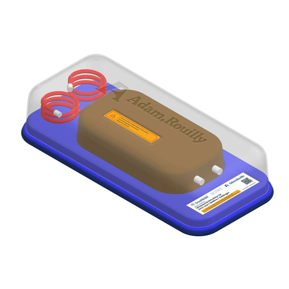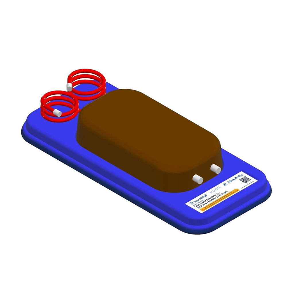- Contains two veins of diameters approximately 8mm and 10mm located 25mm below the surface of the simulator for vascular access
