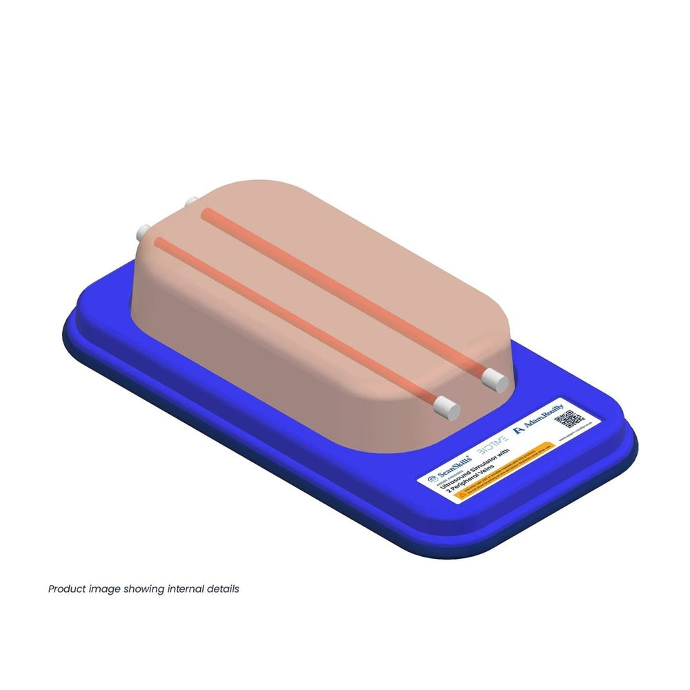 - Contains two peripheral veins – diameters 6mm and 8mm approximately 20mm below the surface of the simulator for vascular access