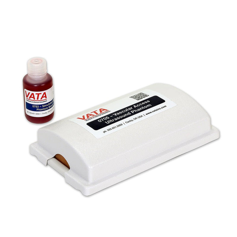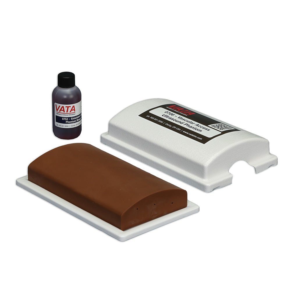 is flesh colored with the tactile feel and puncture resistance of human tissue. The very durable VATA ultrasound phantom can be accessed 1,000s of times, is self-healing, and can be refilled with the supplied stain-resistant simulated blood. There